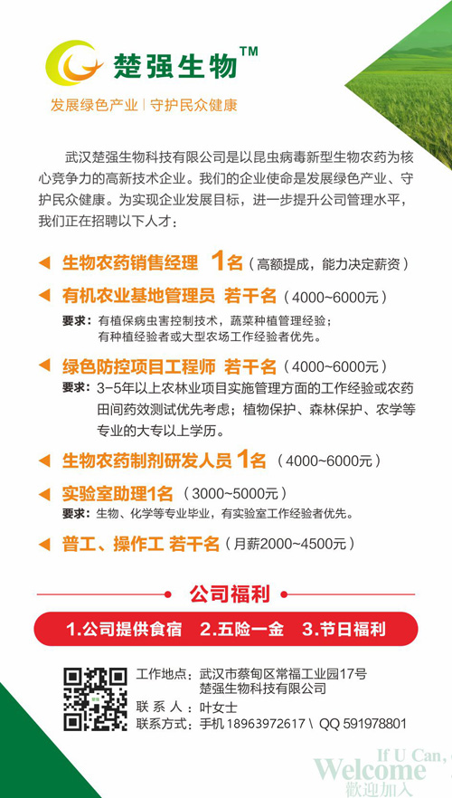 武漢武大綠洲生物技術(shù)有限公司招聘精英