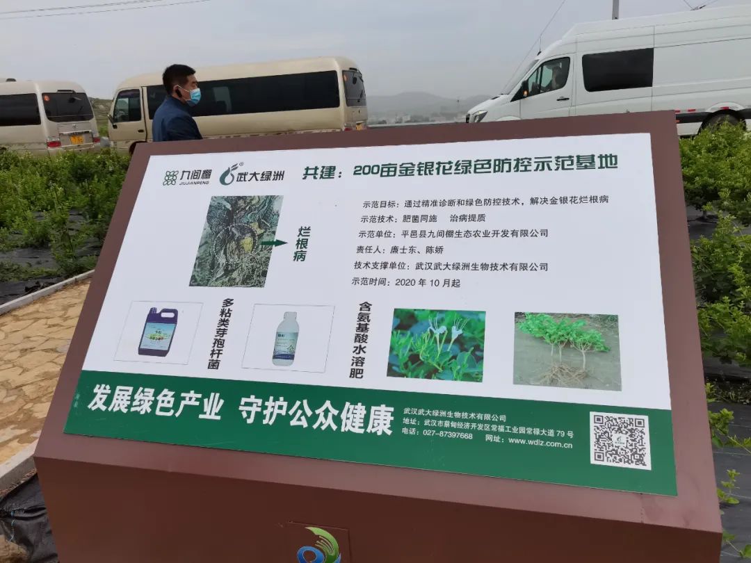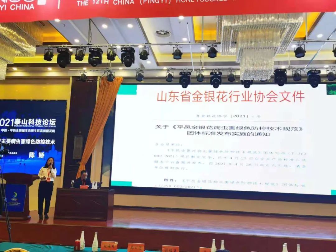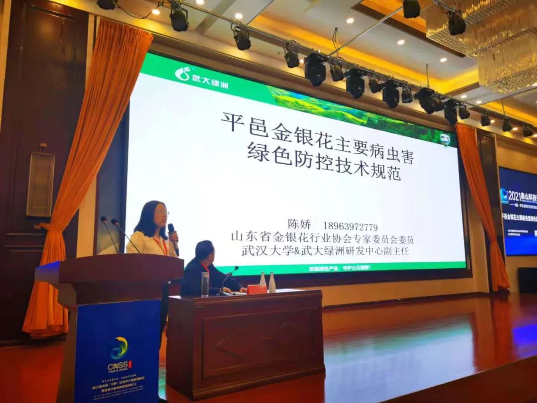 武漢大學(xué)&武大綠洲研發(fā)中心團(tuán)隊為平邑金銀花鑒定出了爛根病元兇——“白紋羽病”,并提供了生物解決方案,在200畝示范區(qū)效果理想,大會參會人員都現(xiàn)場觀看了此項成果。為此,研發(fā)中心副主任陳嬌受大會邀請作主題報告,受山東省金銀花行業(yè)協(xié)會邀請擔(dān)任其專家委員會委員。