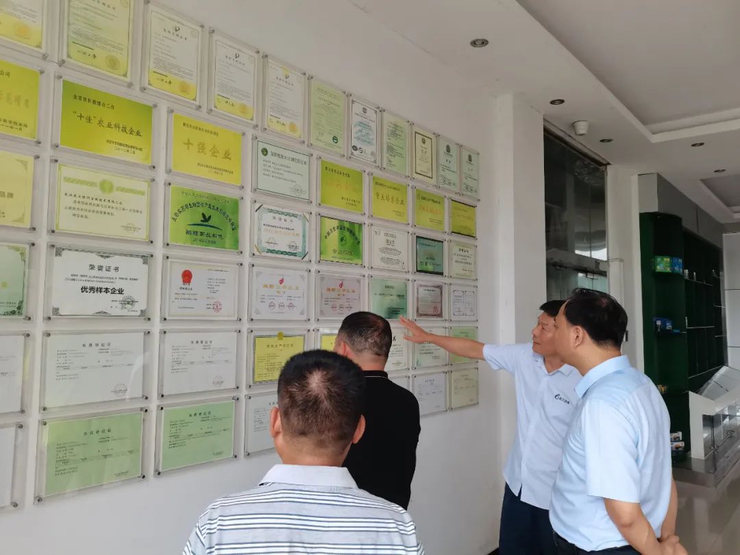 羅少波主任充分肯定了公司所做的工作及未來戰(zhàn)略發(fā)展規(guī)劃,并表示綠色防控是“兩減”項目的核心,希望與武漢楚強(qiáng)生物科技有限公司加強(qiáng)合作,大力做好綠色防控試驗示范、推廣工作。 隨后,林總帶領(lǐng)大家參觀了辦公樓一樓公司展示廳,并向大家重點介紹了公司獲得的榮譽(yù)及核心產(chǎn)品。