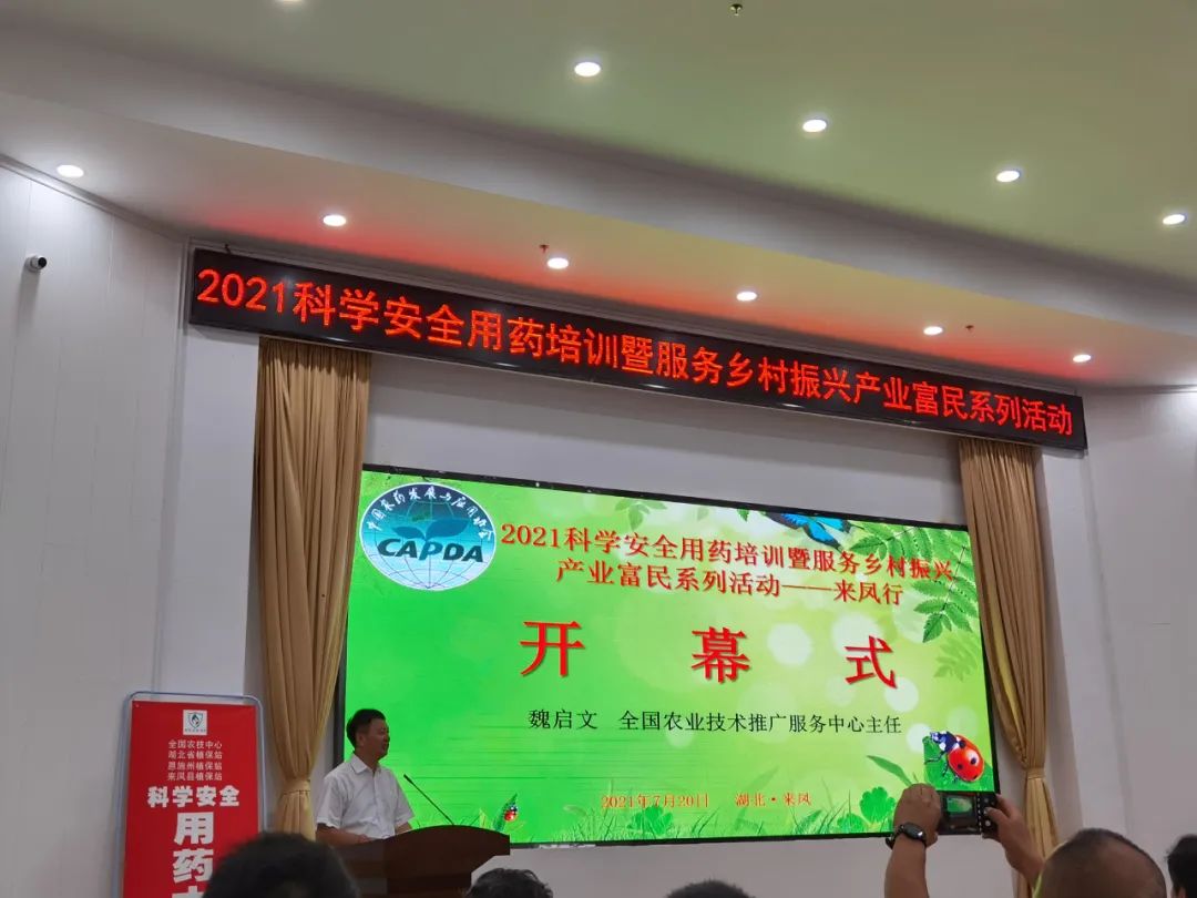 2021年7月20日,由全國(guó)農(nóng)業(yè)技術(shù)推廣服務(wù)中心、中國(guó)農(nóng)藥發(fā)展與應(yīng)用協(xié)會(huì)主辦,農(nóng)業(yè)農(nóng)村部農(nóng)藥檢定所、湖北省農(nóng)業(yè)農(nóng)村廳、恩施州人民政府指導(dǎo),湖北省植物保護(hù)總站、湖北省農(nóng)業(yè)行政執(zhí)法總隊(duì)、恩施州農(nóng)業(yè)農(nóng)村局、來(lái)鳳縣人民政府支持,來(lái)鳳縣農(nóng)業(yè)農(nóng)村局承辦的“2021科學(xué)安全用藥培訓(xùn)暨服務(wù)鄉(xiāng)村振興產(chǎn)業(yè)富民系列活動(dòng)”在湖北來(lái)鳳成功舉辦。