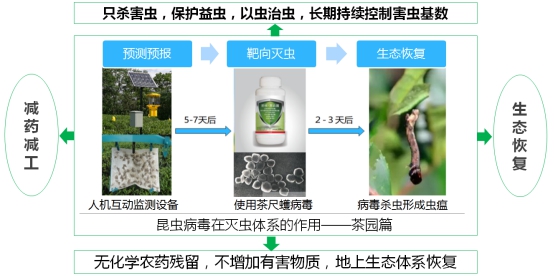 武大綠洲基于微生物技術(shù)為核心的綠色防控5大技術(shù)體系可以從源頭上解決農(nóng)業(yè)面源污染與高質(zhì)量發(fā)展的矛盾,實現(xiàn)農(nóng)業(yè)發(fā)展與環(huán)境保護(hù)共贏。以肥菌同施,治病提質(zhì);昆蟲病毒,靶向滅蟲;科學(xué)治草,增肥保墑;生物防制,人畜安全;循環(huán)再造,變廢為寶的綠色防控5大技術(shù)體系在蔬菜(葉菜類,果菜類)、茶葉、中藥材(金銀花,黃精)、果樹等作物上都有顯著成果。