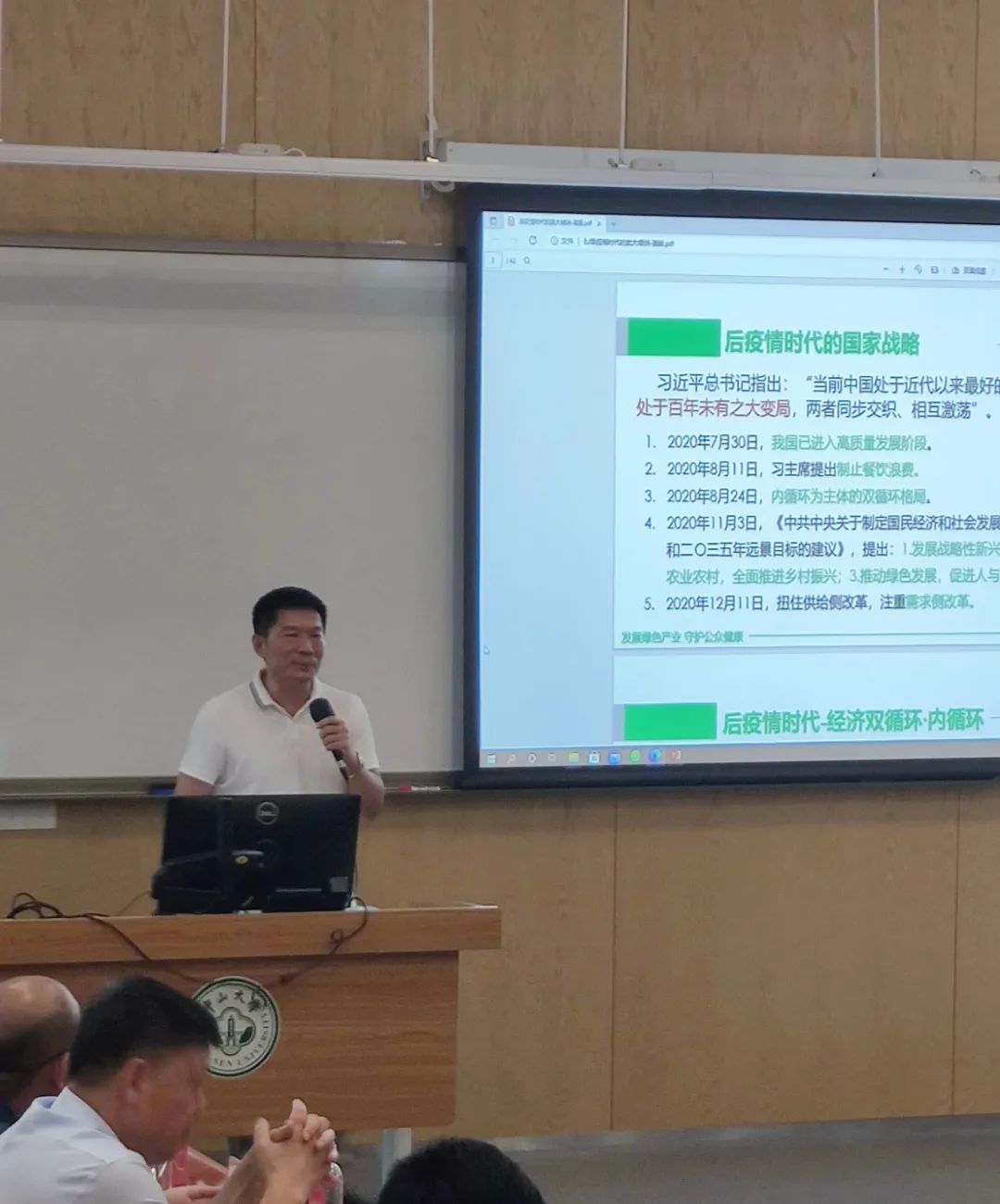 9月23日,值我國第四個“中國農(nóng)民豐收節(jié)”到來之際,中山大學(xué)農(nóng)學(xué)院為慶祝中國共產(chǎn)黨成立100周年,營造全面推進(jìn)鄉(xiāng)村振興、加快農(nóng)業(yè)現(xiàn)代化的濃厚氛圍,密切校內(nèi)外學(xué)術(shù)交流,進(jìn)一步推動人才引進(jìn)和校地產(chǎn)學(xué)研合作,特舉辦了“慶豐收、感黨恩”豐收節(jié)慶祝大會。中山大學(xué)深圳校區(qū)管委會吳志剛主任,深圳市光明區(qū)相關(guān)部門,農(nóng)學(xué)院抗戰(zhàn)辦學(xué)老區(qū)湖南宜章縣農(nóng)業(yè)局等領(lǐng)導(dǎo),武漢武大綠洲生物技術(shù)有限公司、深圳市芭田生態(tài)工程股份有限公司等十家知名涉農(nóng)公司,與農(nóng)學(xué)院部分師生共近50人參加了大會。中山大學(xué)農(nóng)學(xué)院直屬黨支部書記程月華主持了大會。武大綠洲林春鴻董事長受邀參加大會。