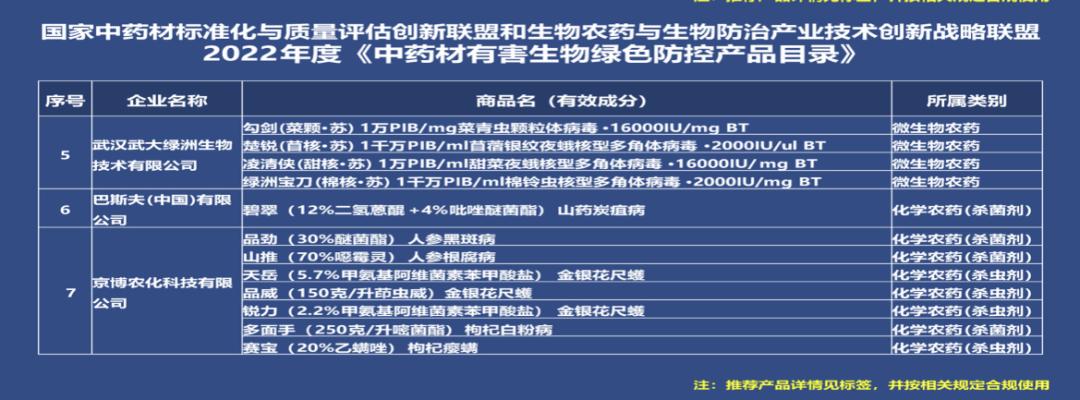 《中藥材有害生物綠色防控產(chǎn)品目錄》↑