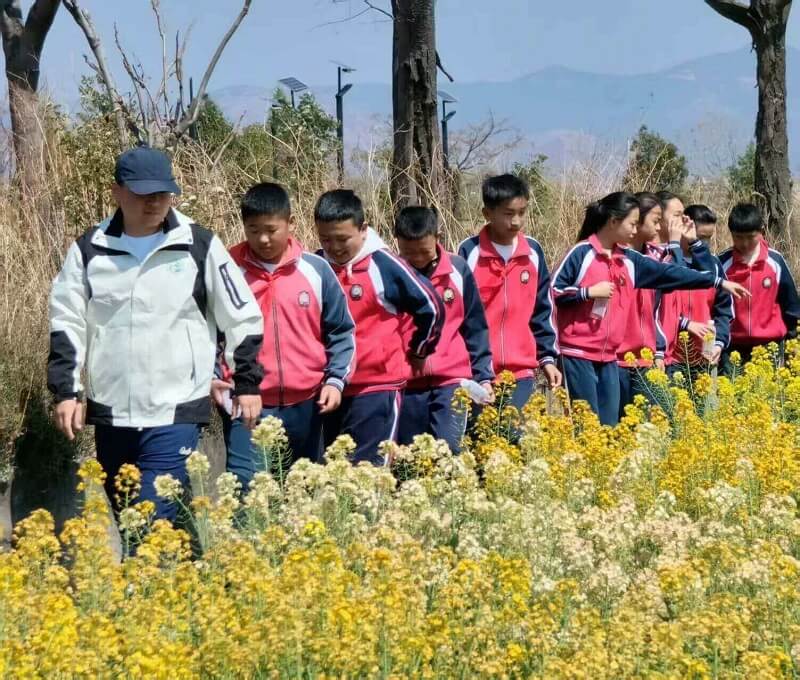 2025年3月11日,在春意盎然的田野間,由洱海綠色防控科技小院與綠色高值種植科技小院聯(lián)合主辦的“賞油菜花,祝你有才華”研學(xué)教育活動在油菜花盛開的試驗田圓滿舉行,為春日增添了一抹充滿知識與活力的色彩。本次活動以百畝盛開的油菜花為天然畫布,通過科學(xué)講解、實踐互動與田間觀察,帶領(lǐng)云南省大理市灣橋鎮(zhèn)古生完小四年級的學(xué)生們走進(jìn)油菜花的生命世界,讓他們在大自然的懷抱中開啟了一場充滿知識與樂趣的探索之旅。