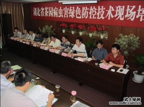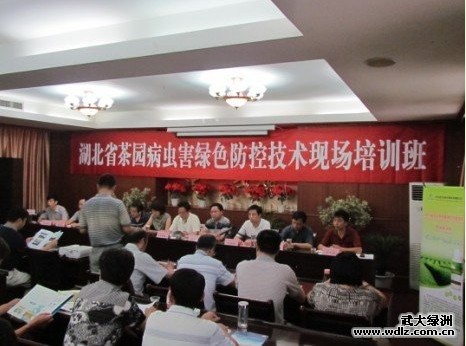 2011年7月21日,由湖北省植?傉局鬓k,武漢武大綠洲承辦在英山縣舉辦了茶園病蟲害綠色防控現(xiàn)場(chǎng)培訓(xùn)班,湖北省農(nóng)業(yè)廳副巡視員伍昌勝、全國(guó)農(nóng)技推廣中心防治處常玲專家、湖北省植?傉菊鹃L(zhǎng)肖長(zhǎng)惜、省農(nóng)業(yè)廳經(jīng)作處、果品辦,省農(nóng)科院,英山縣政府等有關(guān)單位領(lǐng)導(dǎo)和專家出席了開(kāi)班儀式,省茶葉綠色防控示范點(diǎn)植保站負(fù)責(zé)人、英山縣各鄉(xiāng)鎮(zhèn)及茶葉公司技術(shù)人員等80多人參加了培訓(xùn)班學(xué)習(xí)。培訓(xùn)班由武漢武大綠洲生物技術(shù)有限公司承辦,由省植?傉靖闭鹃L(zhǎng)羅漢鋼主持。