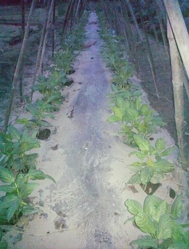 ①24號(hào)天氣晴朗,風(fēng)和日麗,較適宜噴灑藥物,在菜園棚區(qū)內(nèi)選擇作物長(zhǎng)勢(shì)良好的蔬菜上指導(dǎo)農(nóng)戶施藥,在實(shí)驗(yàn)田區(qū)插上試驗(yàn)標(biāo)識(shí),做好試驗(yàn)記錄,詳細(xì)做好試驗(yàn)前作物生長(zhǎng)狀況的信息對(duì)比記錄,攝像取照以便與后期展示明顯效果的對(duì)照。