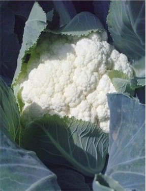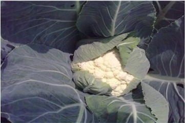 花菜葉面完全開(kāi)展,包裸在葉心的花球斬落頭角,飽滿雪白。減少了卷葉,伏倒葉面的狀況,改觀了花菜品質(zhì)。