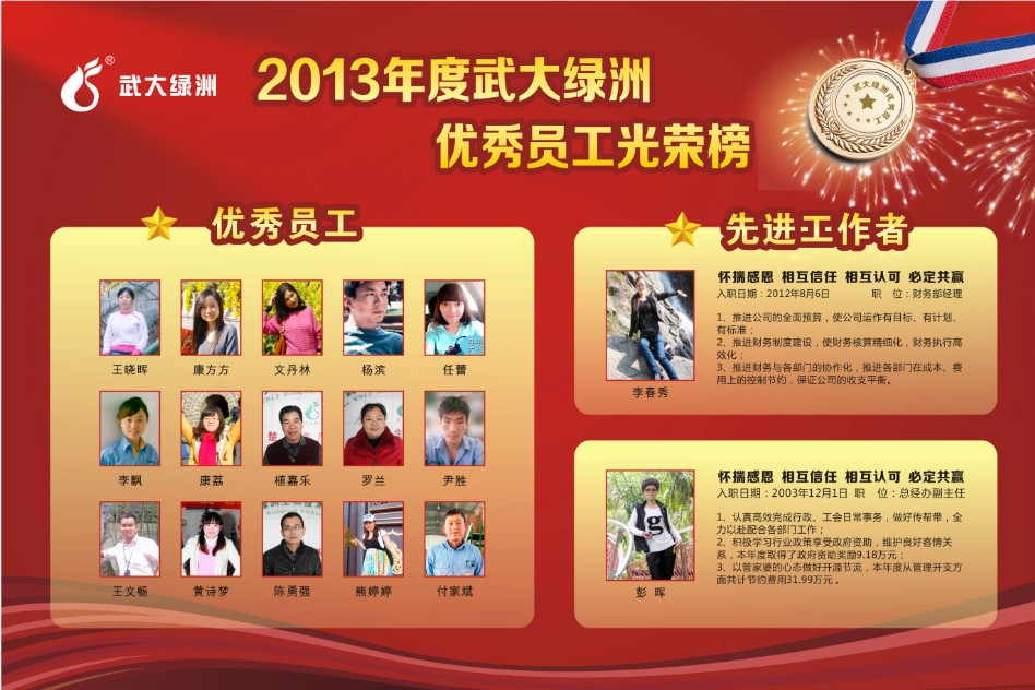 武大綠洲2013年年度優(yōu)秀員工獲獎(jiǎng)名單