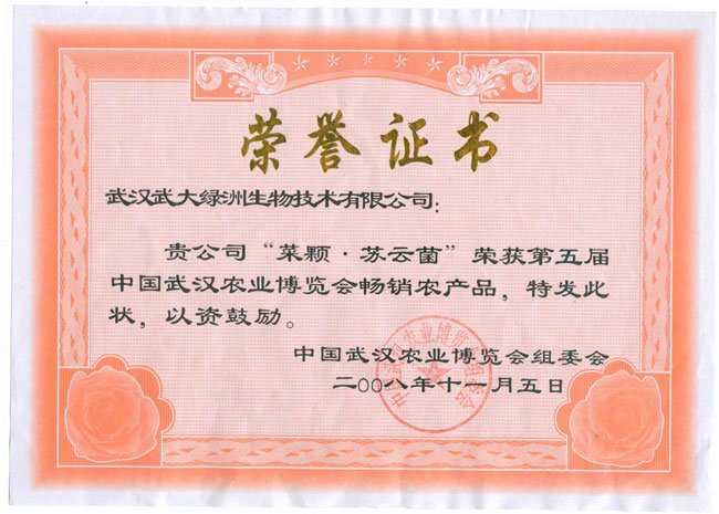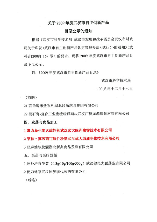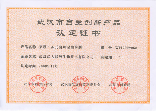 2008武漢自主創(chuàng)新產(chǎn)品認(rèn)定證書—菜...