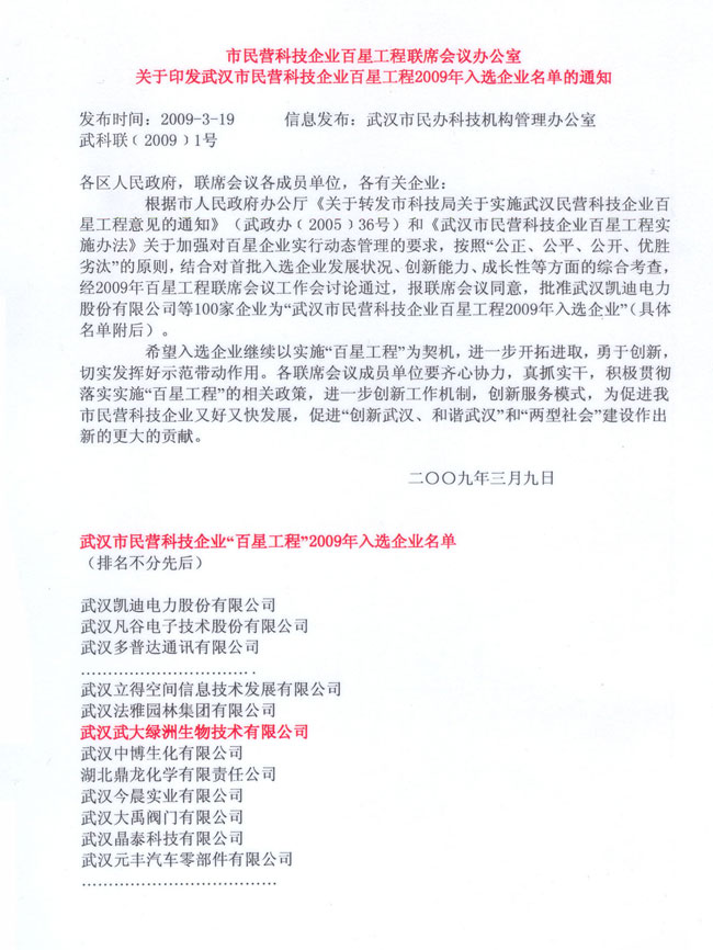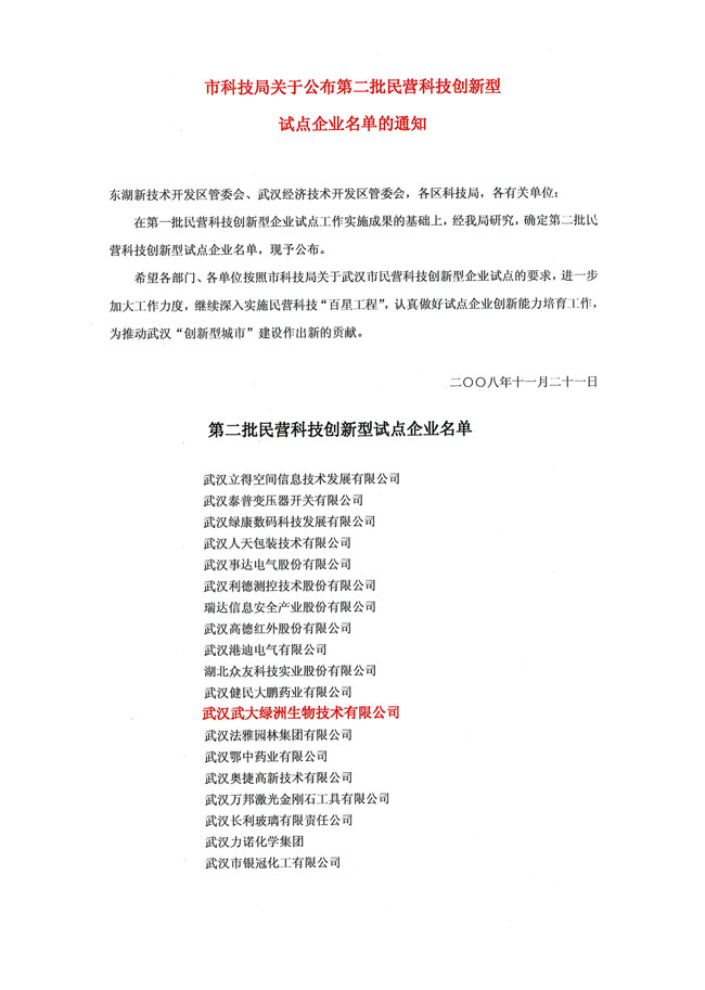 2008武漢第二批民營試點(diǎn)企業(yè)