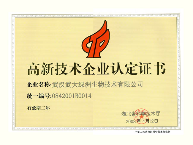 2008湖北高新技術(shù)企業(yè)認(rèn)定證書