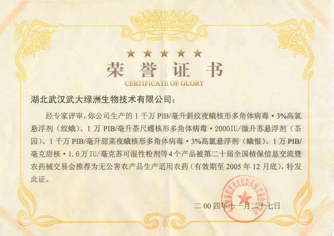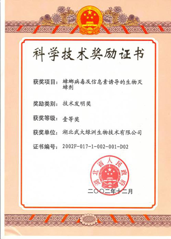 中國衛(wèi)生有害生物防制協(xié)會推薦產(chǎn)品證書