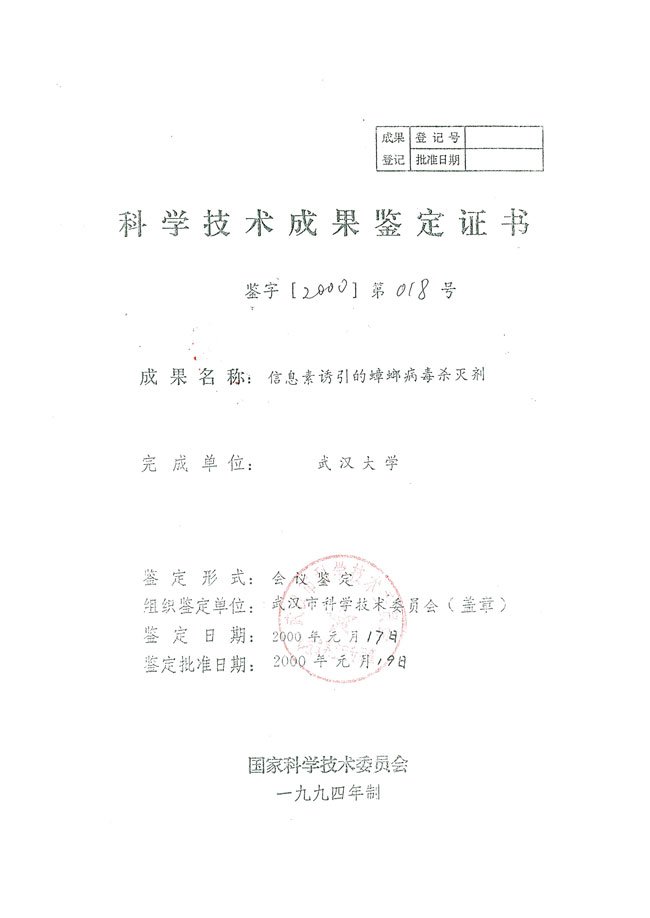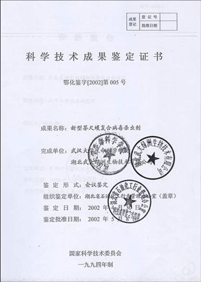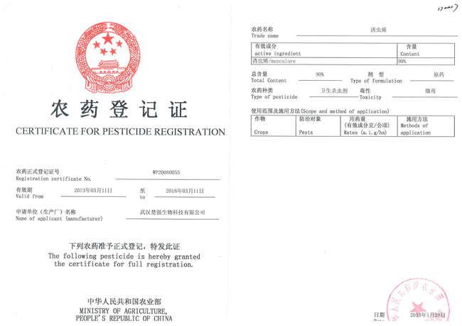 中國農(nóng)業(yè)部頒發(fā)的農(nóng)藥登記證(誘蟲烯)