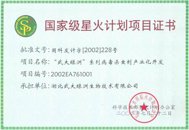 2002國家級星火計(jì)劃項(xiàng)目證書