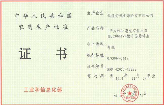 農(nóng)藥產(chǎn)品批準(zhǔn)證(誘蟲烯)
