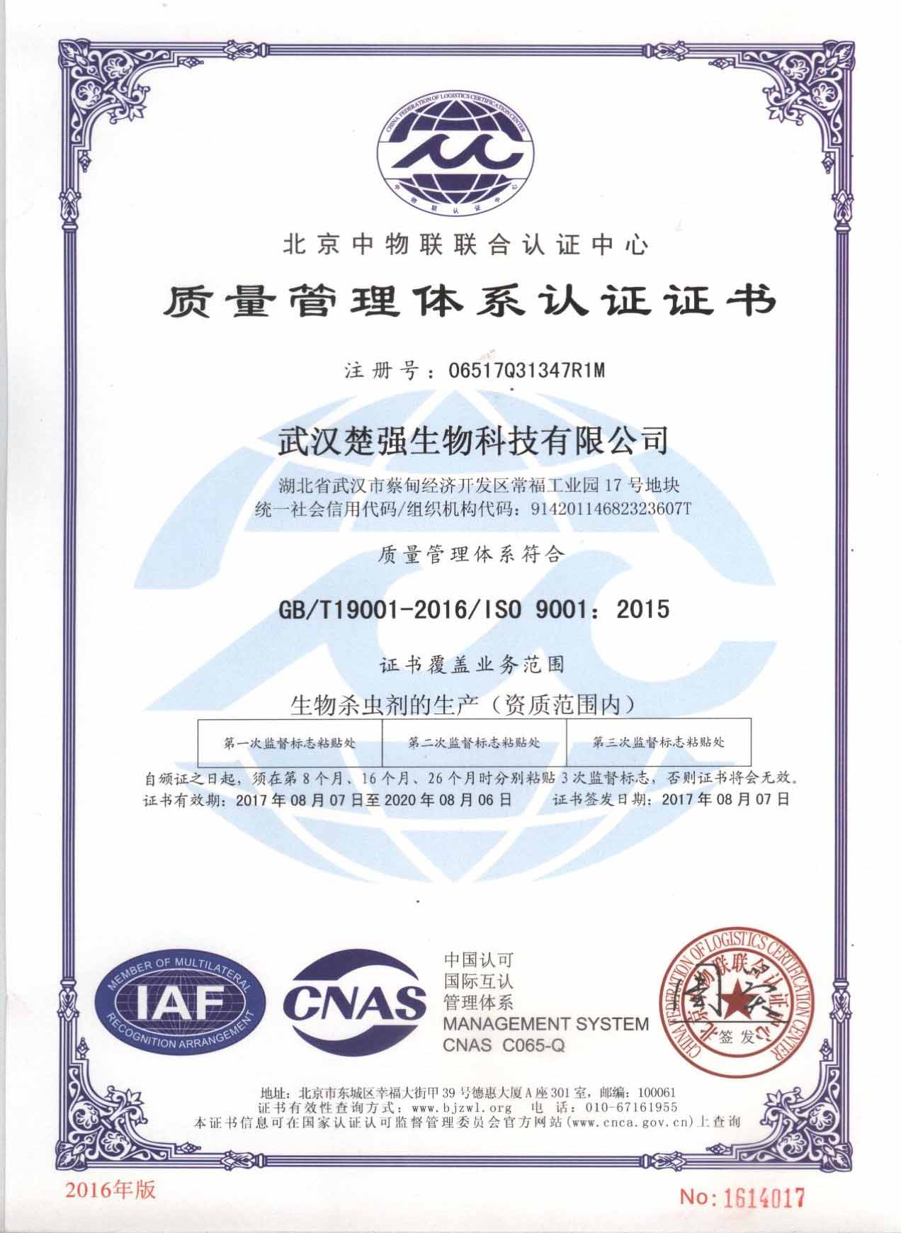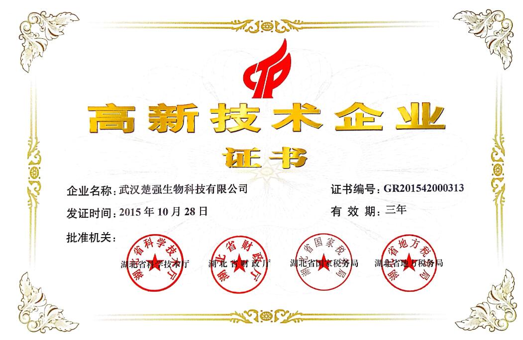 全資子公司武漢楚強(qiáng)高新技術(shù)企業(yè)證書