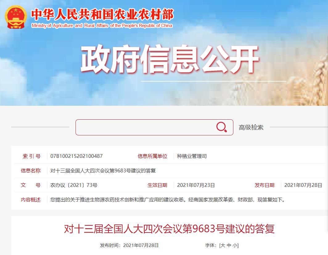 農(nóng)業(yè)農(nóng)村部:將生物源農(nóng)藥列入全國農(nóng)藥產(chǎn)業(yè)發(fā)展十...